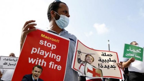 Manifestation contre le président Emmanuel Macron en Israël, le 27 octobre, après la diffusion des caricatures de Mahomet.