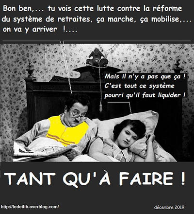 Notre force c’est que la mobilisation commence à recevoir des renforts, et ce n’ est pas en faisant sauter le fusible Jean-Luc Delevoye (le haut commissaire aux Retraites) qui a omis de déclarer qu’il était administrateur au sein d’un institut de formation de l’assurance, que la paix sociale va revenir.