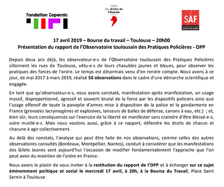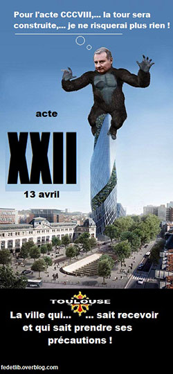 À Toulouse, la manifestation était autorisée et déclarée à la préfecture ; mais, comme le préfet avait ordonné à la police de l’empêcher par la violence dès le début, elle a duré 8 heures et il y a eu énormément de dégâts.