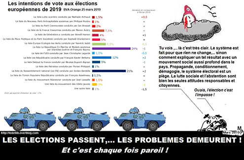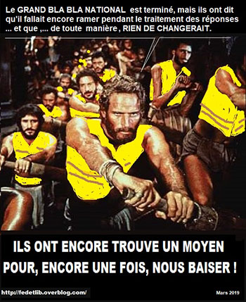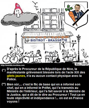 Quant à dire que Macron et Castaner ont maîtrisé la situation lors de l’acte XIX, c’est ce qu’ils veulent faire croire mais c’est tout à fait faux. Les Blacks Blocs n’avaient pas appelé à manifester ce samedi 23 mars 2019 ! Donc ils n’étaient pas présents, du moins pas en tant que Blacks Blocs. Et malgré tout il y a eu des "tensions" dans au moins un dizaine de villes. On verra ce qu’il se passera lors de la prochaine manif où les Black Blocs vont parait-il venir, c’est-dire lors de l’« ultimatum2 » à Paris pour l’acte XXIII, le 20 avril 2019 d’après Le Monde.