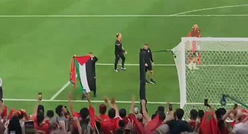 Que ce soit dans les gradins ou à l’extérieur des stades, la Palestine est ultra-présente via son drapeau, ses bannières, ses keffiehs et autres multiples brassards hissés régulièrement par des citoyens qui montrent leur solidarité avec ce peuple martyrisé par un régime d’assassins, quel que soit le gouvernement qui y préside.
