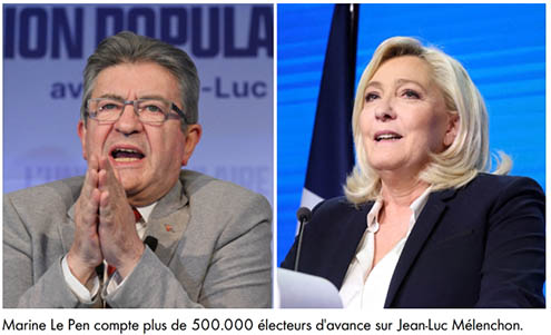 Selon l’AFP, Marine Le Pen compte plus de 500.000 électeurs d’avance sur Jean-Luc Mélenchon.