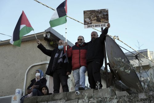 Manifestation à Cheikh Jarrah en soutien à des Palestiniens expulsés de leur maison, le 21 janvier 2022