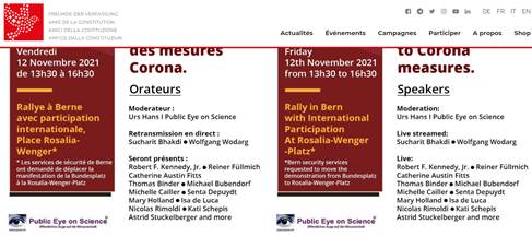 Robert KENNEDY était là en chair et os. Les Allemands Reiner FÜLLMICH, Wolfgang WODARG et Sucharit BHAKDI ont fait leurs allocutions via Zoom.