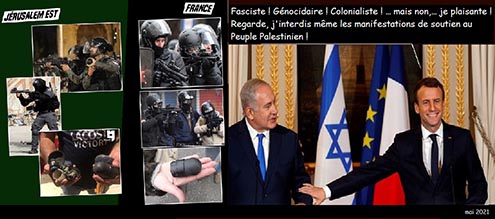 Note de do : Naturellement, le pouvoir a interdit la manif de soutien à la Palestine du 15 mai 2021 à Paris. Qu’attendre de ces sionistes, de toute façon ? Macron est la la solde de Rothschild. C’est très connu ! Et c’est à Lord Rothschild que Lord Balfour a adressé sa déclaration de création d’un "foyer national juif" en Palestine en 1917.