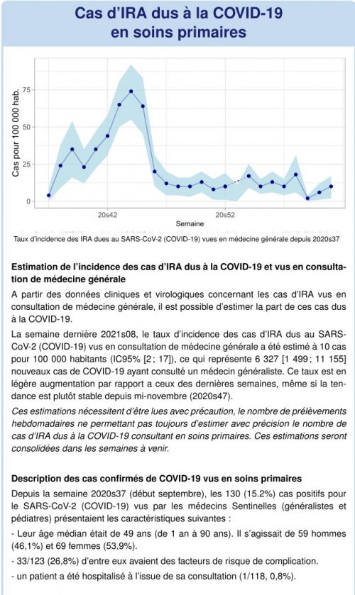 Semaine 8 (du 22 au 28 février) de 2021 en PDF. Extrait concernant le covid (IRA = Infection Respiratoire Aigüe) :