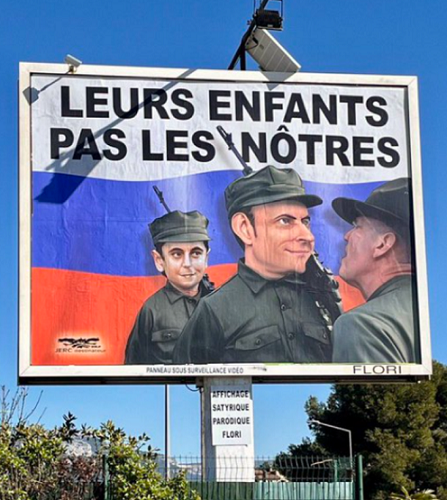 Le président de la république, son premier ministre, son ministre des Affaires étrangères… n’ont aucun enfant, mais ont le projet de sacrifier les nôtres sur le front Russe en impliquant la France dans une guerre mondiale.