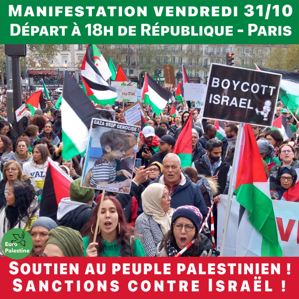 Stop génocide ! Soutien à la Palestine : Manifestation ce vendredi soir à Paris !