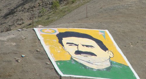 Giant pictures of Ocalan are scattered across the Kandil Mountains in northeastern Iraq. (photo by Amberin Zaman)
