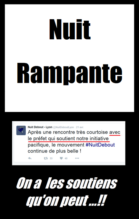 Au moment précis où le processus législatif entame une phase décisive, l’absence de toute perspective de résistance concrète de la part de ce prétendu "front du refus" CGT-FO est l’aveu le plus criant de leur forfaiture, au quel fait écho le silence assourdissant des "nuits debout" …