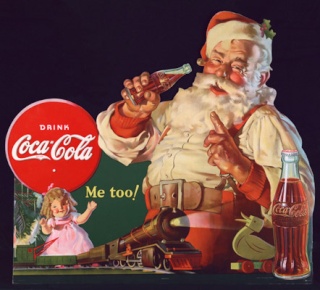 L’hiver étant une période moins propice à la consommation de la célèbre boisson gazeuse, quoi de mieux qu’un symbole mondialement connu et immédiatement reconnu ? La firme Américaine a eu le génie de demander à Haddon SUNDBLOM de dessiner ce vieux bonhomme (dont la renommée grandissait sur le continent américain) en train de boire du Coca Cola pour reprendre des forces pendant la distribution de jouets. Ainsi les enfants seraient incités à en boire durant l’hiver.