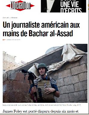 Alain Jules : « La presse mainstream frappadingue avait attribué, sans le début même d’un commencement de preuve, la disparition du journaliste américain James Foley en Syrie, au président syrien Bachar al-Assad. C’était en novembre 2012. Hier, stupeur et tremblements, les jihadistes de l’EI revendiquent non seulement son enlèvement, mais aussi son assassinat par décapitation. Comme tous reprennent la daube de l’AFP que nous reprenons en dessous in-extenso, Libération allait de son petit refrain anti-Assad. Toute honte bue, certains trouveront encore le zèle d’insulter, de mentir. Normal, l’impunité dont bénéficient certains est indécente. Bien pire, cet enlèvement a eu lieu bien au début du conflit, ce qui prouve bien que depuis ce début de conflit, et non à cause de la supposée répression de l’armée syrienne, ces gens-là, takfiris, jihadistes et je ne sais trop quoi, financés par l’Occident, étaient en opération commandée contre le président Assad et la Syrie. Vous avez dit "révolution arabe" ? Les Etats-Unis se disent… horrifiés. Tiens donc. »