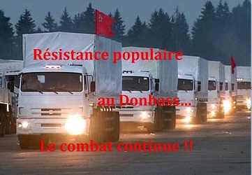 A Kiev, le "Premier ministre" nazi Arseni Iatseniouk a par ailleurs annoncé lors d’un conseil des "ministres" retransmis à la télévision que le plan de paix devait prévoir le retrait de ce qu’il ose appeler "des forces russes, ainsi que des bandits et des terroristes russes" et le rétablissement des frontières avec la Russie. Les nazis et les collabos appelaient ainsi les résistants au nazisme en France en 1940-44 : des "terroristes".