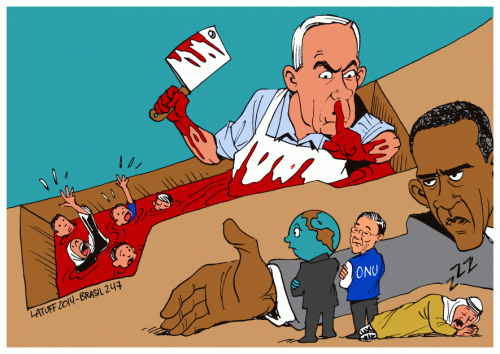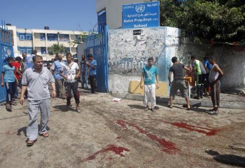 Pendant que la plupart des médias français font mine de croire qu’il y a deux armées et des victimes civiles des deux côtés, se gardant bien de dire que 35 des 37 « victimes israéliennes » sont des soldats de l’occupation se trouvant en train de massacrer à Gaza, on peut toujours attendre les condamnations et sanctions de notre gouvernement alors qu’Israel vient de bombarder une école sous protection de l’ONU à Beit Hanoun.