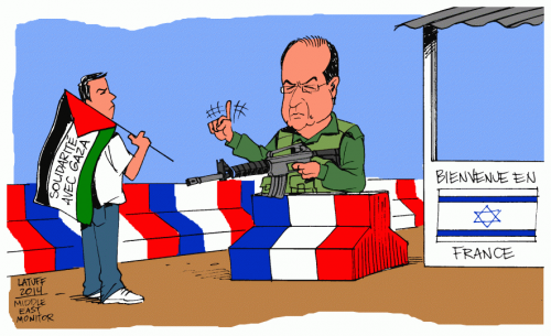 Ensuite, à la télé, les journaputes ont menti en prétendant que c’étaient des manifestants solidaires de la Palestine et de Gaza qui avaient créé cet incident ; puis Hollande, le représentant de la dictature sioniste française, a dit qu’il ne fallait pas "importer le conflit israélo-palestinien" en France. Puis certaines manifs de soutien à la Palestine ont été interdites sous ce prétexte pourtant fabriqué de toute pièce par de très violents sionistes, probablement membres de la très fasciste LDJ, qui avaient en tout cas agi sur ordre venu de très haut.