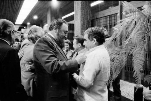 Fidel condecora con la Orden Félix Varela, al escritor colombiano Gabriel García Márquez. Foto : Jorge Oller