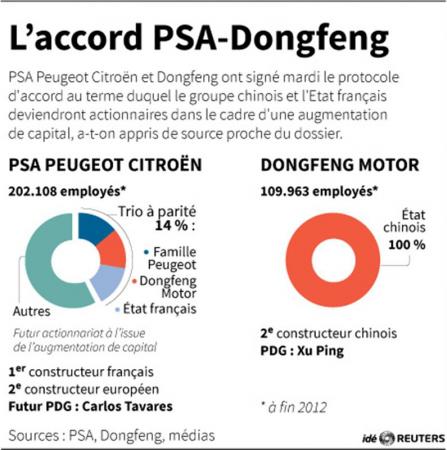 La famille Peugeot, qui détenait jusqu’alors 25,4% du capital et 38% des droits de vote, va voir sa participation ramenée à 14%, au même titre que Dongfeng et l’Etat français, et perdra de ce fait le contrôle de la société fondée en 1810.