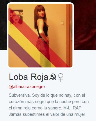 "J’ai le cœur noir comme la nuit, mais mon âme est rouge comme le sang." Voilà comment se décrit la "subversive" Alba Gonzalez Camacho dans sa bio sur son compte Twitter.