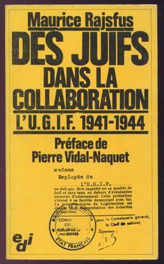 Des juifs dans la collaboration est paru en 1980. L’auteur, le journaliste devenu historien Maurice Rajsfus, est né en 1928, de parents juifs polonais, morts en déportation à Auschwitz et Maurice Rajsfus fut lui-même raflé au Vel d’Hiv alors qu’il n’était qu’adolescent (il en réchappa par miracle). L’ouvrage est préfacé par Pierre Vidal-Naquet, historien connu notamment pour ses travaux sur le génocide juif et le négationnisme, qui apporte au livre son indispensable crédit. Le livre, épuisé, n’a été ni réédité ni réimprimé depuis sa sortie.