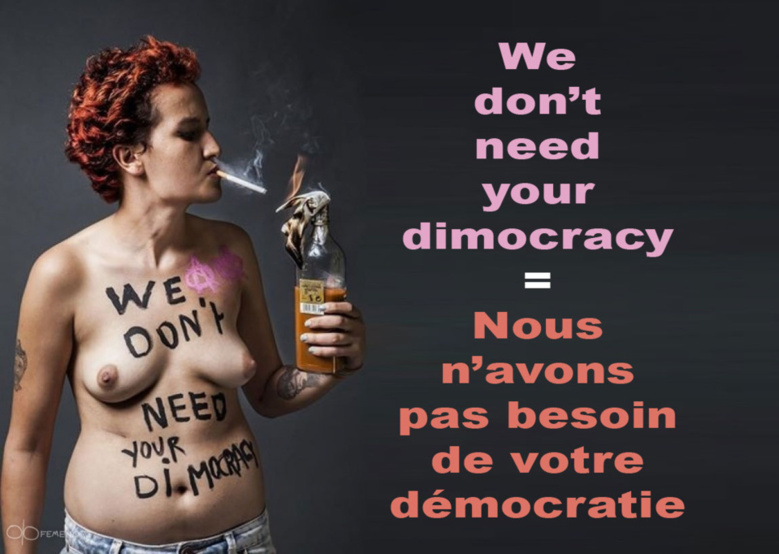 « Je ne veux pas que mon nom soit associé à une organisation islamophobe ! Je ne connais pas les sources de financement du mouvement. Je l’ai demandé à plusieurs reprises à Inna (Inna Shevchenko, leader ukrainienne du mouvement) mais je n’ai pas eu de réponses claires. Je ne veux pas être dans un mouvement où il y a de l’argent douteux. Et si c’était Israël qui finançait ? Je veux savoir ! »