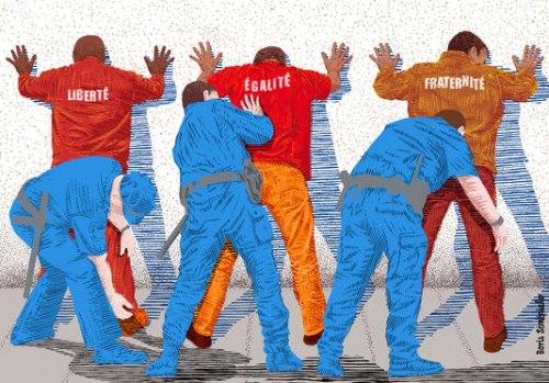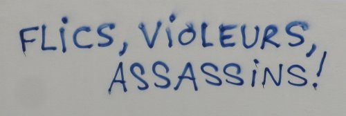 D’autre part "INTERDIRE-SURVEILLER-PUNIR" est la vraie devise de la pompeuse république (liberté-égalité-fraternité ? mon cul !!!). La police est l’instrument de domination le plus pervers qui permet tous les abus de pouvoir et fait obéir aux lois les plus dégueulasses.