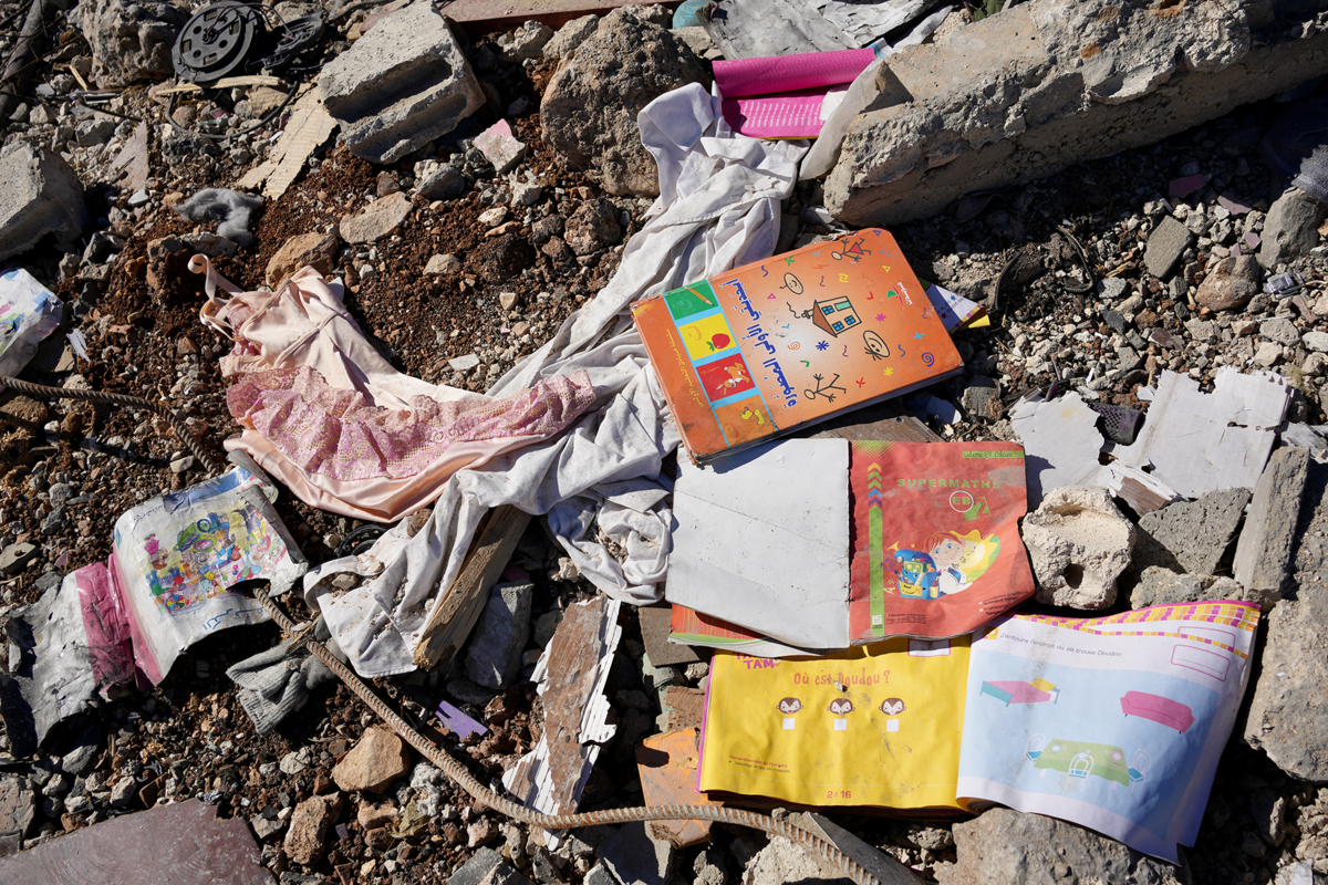 Le 20 octobre 2024, dans les décombres de la maison bombardée six jours plus tôt par l’armée israélienne à Aïto, au Liban. / Photo Rachida El Azzouzi / Mediapart