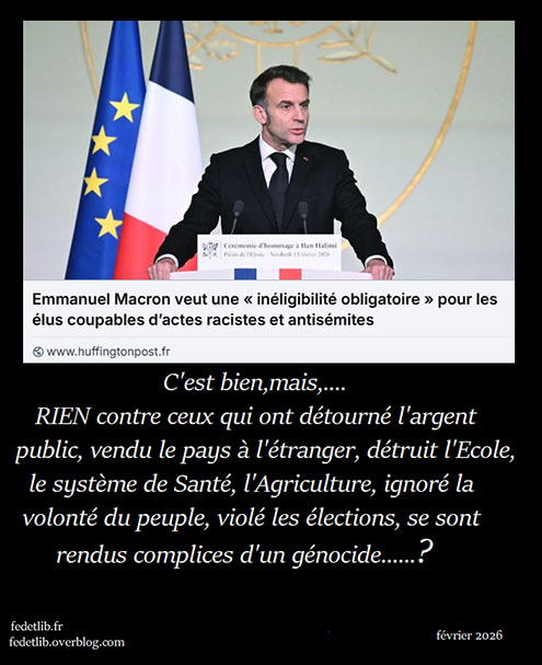 La famille de Quentin Deranque a demandé dignement qu’il n’y ait pas d’exploitation politique de la mort tragique de leur fils. Mais on assiste à l’écœurante récupération : le RN qui s’engouffre, sur tous les médias, dans ce qu’il voit comme une aubaine pour tenter de retourner en sa faveur une sorte de front national, tout en faisant oublier ses graves délits de détournements de fonds publics. Et, tout aussi écœurants, certains à droite, au centre et à gauche qui exploitent cet événement tragique pour se débarrasser d’un concurrent (qui leur facilite la tâche par ses excès et ses dérapages).