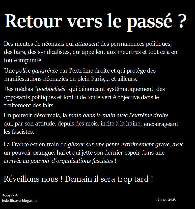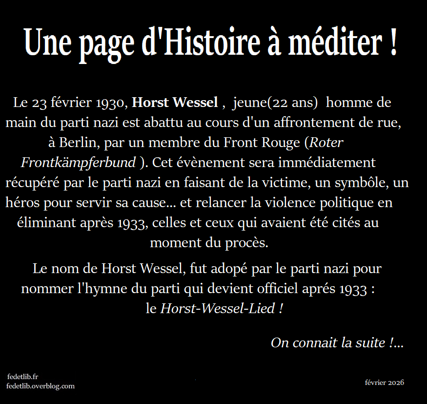 Que la présidente de l’Assemblée nationale se précipite pour faire une minute de silence à un militant présumé néo-nazi et antisémite interpelle, aussi condamnable que soit cet assassinat . Alors que les ratonnades antisémites et racistes, anti noirs , anti arabes , bien plus nombreuses, n’ont pas eu cette attention de la part de l’Assemblée nationale. N’oublions pas les mécanismes de la montée des ligues et ne laissons pas se répéter un 6 février 1934 dans nos rues. N’oublions pas comment les scandales financiers des élites et la crise économique, sociale et politique, ont été exploités par l’extrême droite, faute de gouvernants respectés ou d’alternative sérieuse, efficace et moralement irréprochable…Comme aujourd’hui ?