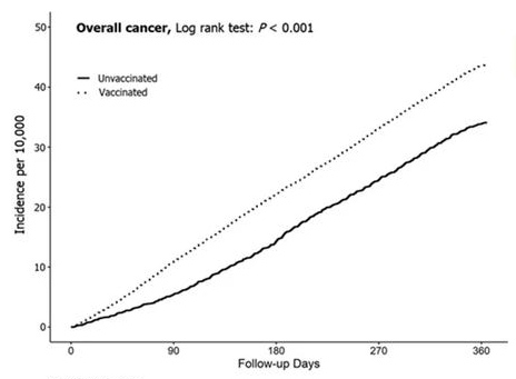 Cette nouvelle étude a été publiée dans la revue Biomarker Research, propriété de Springer Nature, qui publie certaines des revues scientifiques les plus prestigieuses au monde. Elle a été rédigée par des médecins coréens en chirurgie orthopédique et en soins intensifs, qui ont analysé les dossiers médicaux de plus de 8,4 millions d’adultes entre 2021 et 2023, afin d’estimer l’incidence cumulée et les risques ultérieurs de cancers globaux un an après la vaccination contre le covid-19.