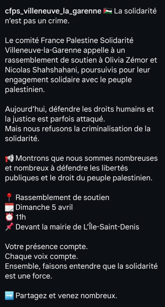 Merci au Comité Palestine Roubaix qui écrit : « Olivia