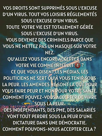 STOP à la terreur, à la folie, à la manipulation, à la dictature, aux mensonges et à la plus grande arnaque sanitaire du 21e siècle :