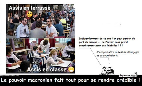 Avant la guerre — "contre le coronavirus" (dixit Macron) —, nécessaire pour sauver le capitalisme, celui-ci ne pouvait plus avancer parce qu’il était trop encombré par les scories du passé. Mais, grâce au confinement, pendant qu’une bonne partie de l’économie ne dépendant pas ou peu d’internet était détruite, l’économie numérique était nettement favorisée. Et, elle l’est toujours par l’obligation du masque dès qu’on entre dans un magasin ou même, parfois, dès qu’on sort de chez soi.