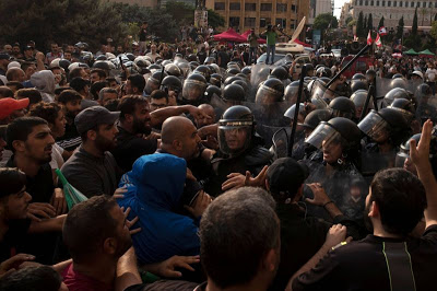 Mardi 29 octobre 2019, au 13e jour consécutif de la révolte inédite contre le pouvoir libanais, la nervosité et la tension dans la rue sont montées d’un cran. Des partisans du Hezbollah et du mouvement Amal ont attaqué le centre-ville de Beyrouth, cœur de la contestation, et ont saccagé les tentes installées, place Riad el-Solh et place des Matyrs, par les manifestants anti-gouvernement. De nombreuses disputes et bagarres avaient auparavant éclaté entre manifestants et automobilistes excédés, au niveau des barrages routiers tenus par les protestataires sur les axes névralgiques à travers le pays, notamment au niveau de la voie express du Ring où de violentes échauffourées ont opposé manifestants à des habitants de quartiers voisins, dont de nombreux partisans du Hezbollah et d’Amal.