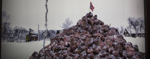 L’esthétique macabre de sa Pile o’Sápmi était là pour faire directement écho aux Piles o’Bones, ces amas de têtes de bisons entassées par les chasseurs occidentaux dans les plaines nord-américaines. Pour Máret Anne Sara, il s’agit de montrer que la réduction forcée du cheptel norvégien ressort de la même logique que celle qui guidait les colons européens quand ceux-ci s’attaquaient aux bisons pour mieux conquérir le territoire des Amérindiens.