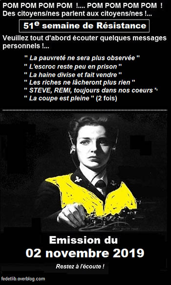 L’« écoute de l’émission » ne sera pas suffisante ; car, la révolution n’est pas un feuilleton télé à regarder, ce n’est pas un spectacle, il faudra se déplacer pour participer.