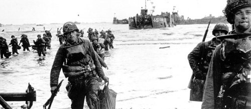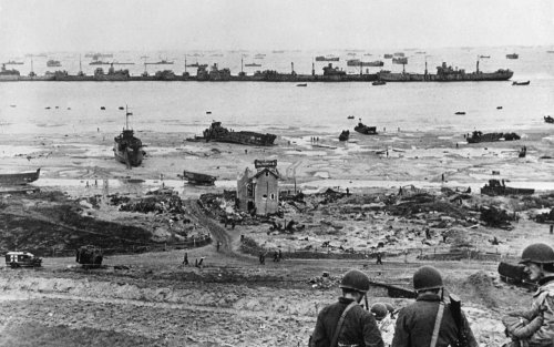 Le jour J – le 6 juin 1944 – une immense armada composée de milliers de navires de guerre vogua des côtes d’Angleterre à la conquête des côtes normandes dans le sens inverse de Guillaume le Conquérant (1066) venu, quelques siècles auparavant…