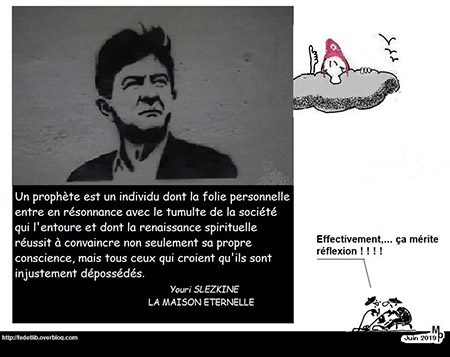 Le dessin a beau être joli, Mélenchon n’est pas du tout un prophète, la preuve, il est passé de 20% à 6% des voix en 2 ans ! Autres preuves dans l’article.
