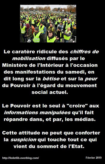 Nous avons placé une caméra sur les parcours des manifestations Gilets Jaunes du 19 janvier (Acte 10) et 23 février (Acte 15). Il en ressort que les chiffres fournis par le ministère de l’Intérieur sont 5 à 10 fois inférieurs à la réalité.