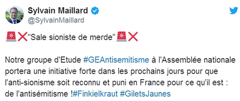 La taupe de la terreur « antisémitiste » petite-bourgeoise s’est infiltrée au sein du Mouvement des Gilets jaunes via la gauche réformiste son vecteur de prolifération privilégié.