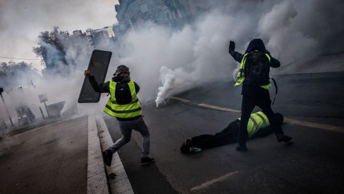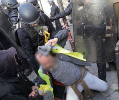 On se regroupe les uns contre les autres dans un tout petit périmètre, certains bras levés, ça change rien, je me fais saisir par le col, insulter, je reçois plusieurs coups de matraques. Je me dégage et reviens contre le groupe, je me fait gazer a bout portant, la BAC encore, je suffoque, je panique, j’arrive à sauter par dessus un petit mur de la ruelle. Je me réfugie dans un coin avec quelques autres, on est dans une école, les gaz lacrymogènes nous reviennent dessus, on se cache, les CRS sont entrés et nous trouvent au bout de quelques minutes.
