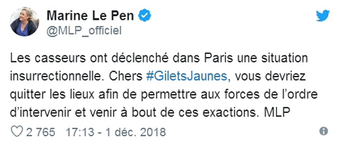 Ils l’ont signalé aussi sur France-info peu avant 18 heures de ce fameux samedi 1er décembre 2018. Pour ceux qui se posaient des questions sur la nature du mouvement des gilets jaunes, cela signifie que tout ce qui s’est passé à partir d’environ 18 heures est indépendant de la plupart des fachos.