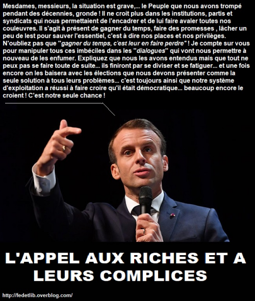 Comme s’il y avait besoin d’exciter les gilets jaunes artificiellement ! comme si l’attitude du pouvoir ne suffisait pas ! "on" nous prend vraiment pour des cons !