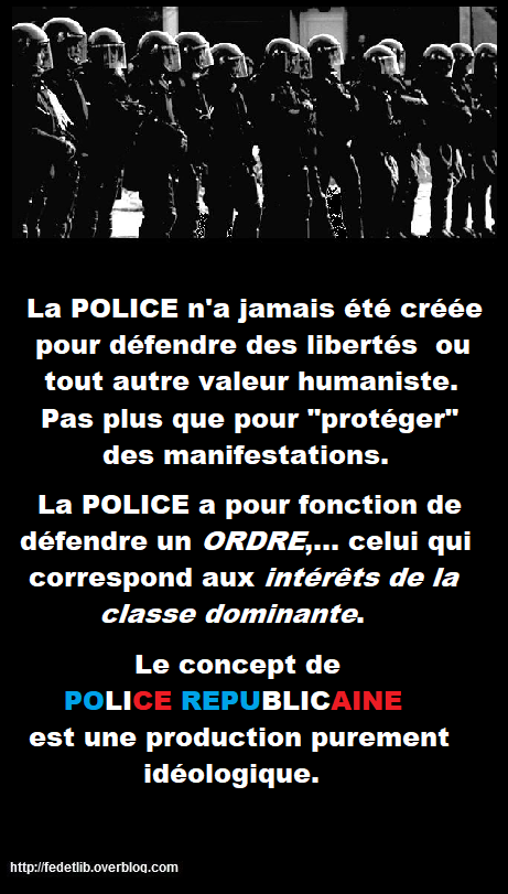 Dans le slogan « Police, Milice ! Flicaille, Racaille ! », il n’est nul besoin de justifier "Flicaille, Racaille !" ; par contre, les plus jeunes d’entre vous auront peut-être besoin d’une explication pour la première partie du slogan : « Police, Milice ! »