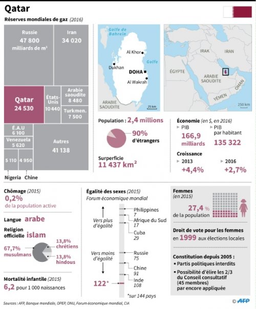 Trois pays (Arabie, Emirats, Bahreïn), ainsi que l’Egypte, ont tour à tour annoncé lundi 5 juin 2017 à l’aube la rupture de leurs relations diplomatiques avec le Qatar, qu’ils accusent de "soutien au terrorisme", y compris Al-Qaïda, le groupe Etat islamique (EI) et la confrérie des Frères musulmans. Cette crise diplomatique majeure au Moyen-Orient arrive quinze jours après un appel de Donald Trump à l’unité des pays arabes face au terrorisme.