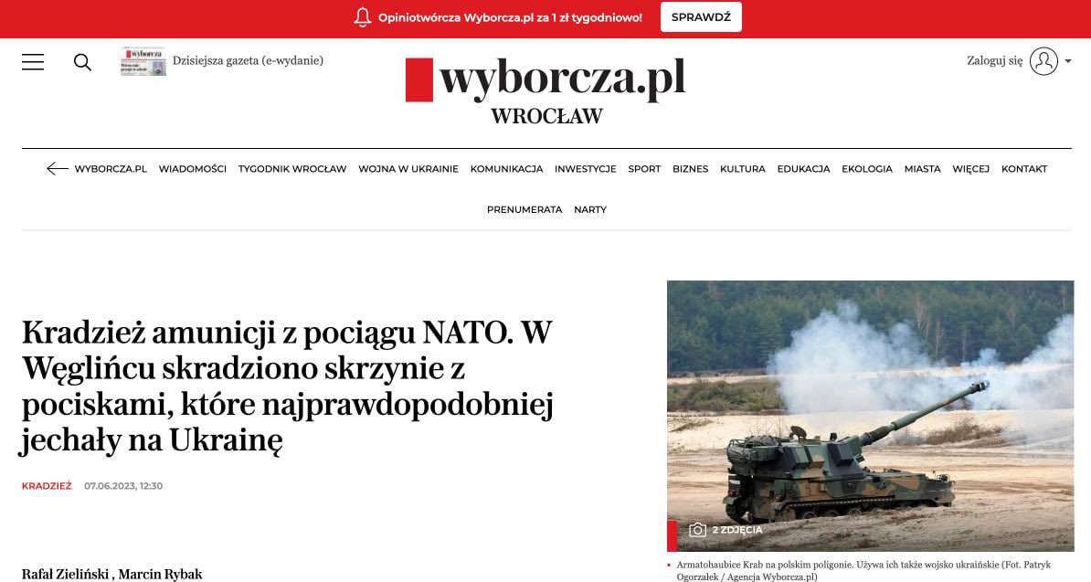4 caisses d’obus à fragmentation hautement explosifs de 155 mm ont été volées dans une gare de Basse-Silésie. Le train était gardé par des soldats de l’OTAN, mais les voleurs ont contourné les gardes.