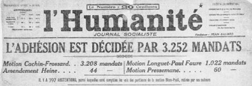 Le jour où le Parti socialiste se divise en deux. Celui qui continue son chemin avec la deuxième internationale qui a trahi le prolétariat en votant les crédits de guerre pour la première guerre mondiale. Et celui qui décide d’adhérer à la troisième internationale fondée à Moscou en 1919 avec Lénine.