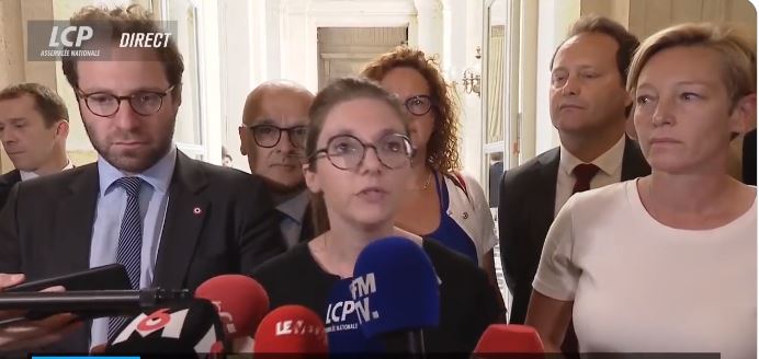« Être en ce moment dans l’hémicycle avec une espèce de bataille de chiffonniers sur une recevabilité ou non d’amendements nous paraît en total décalage par rapport à l’effroi qui à mon avis submerge notre pays » a déclaré devant la presse la patronne des députés Renaissance Aurore Bergé.