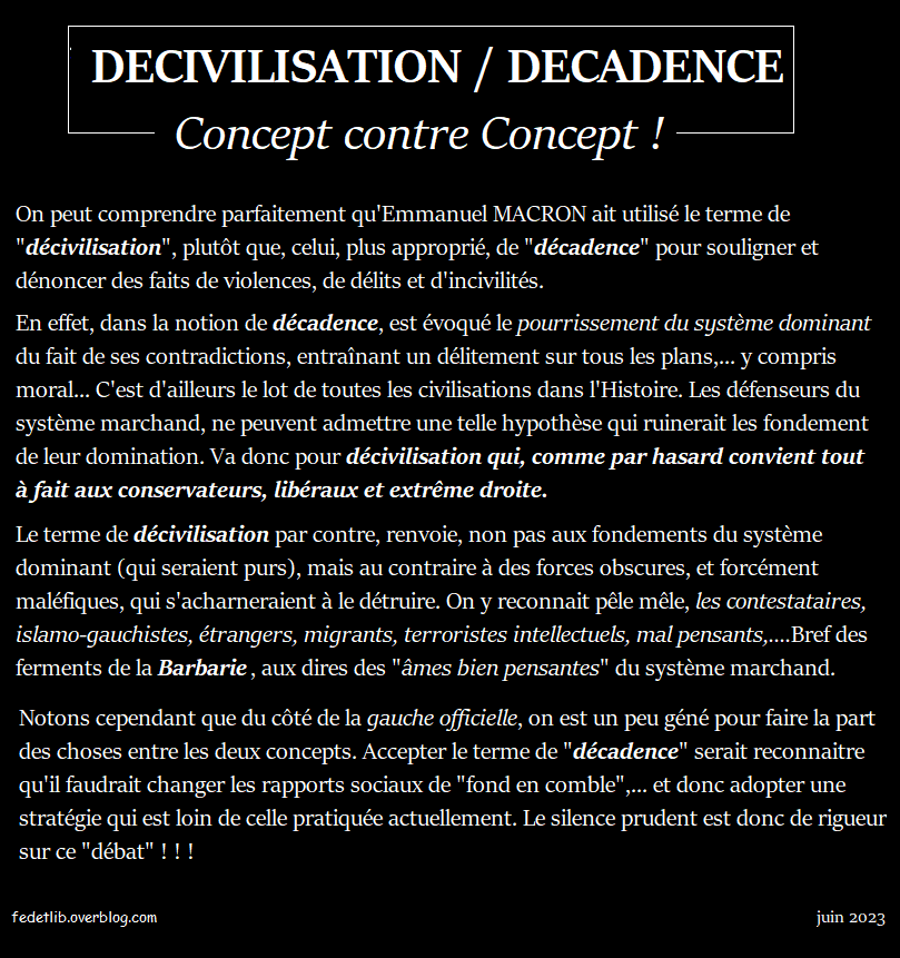 Suite à la pertinence évidente de cet "article anonyme" on s’attendait donc logiquement à ce qu’un débat se fasse jour sur les circonstances actuelles de la faillite de la "gauche" française de notre époque, mais il n’en a donc rien été, comme une confirmation flagrante de cette faillite semble-t-il donc totale et définitive.