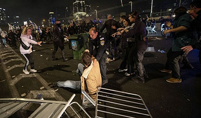 Des milliers de personnes ont manifesté à Tel-Aviv dans la nuit de dimanche à lundi 27 mars 2023 après le limogeage par le Premier ministre Benjamin Netanyahu de son ministre de la Défense.