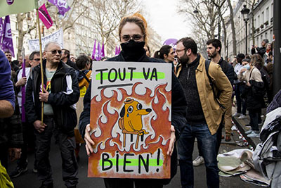 Concernant la mobilisation contre la réforme des retraites, 67 % des personnes interrogées jugent que la mobilisation doit se poursuivre, 70 % affirment que le gouvernement est responsable des violences et des débordements et 83 % pronostiquent que la situation va s’aggraver dans les jours à venir.